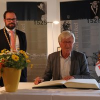 Heinrich Bedford-Strohm Vorsitzender des Weltkirchenrates trägt sich in das Goldene Buch der Stadt ein