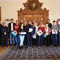 Gewinnspiel zur Blackoutkarte: Oberbürgermeister gratuliert Gewinnerinnen und Gewinnern im Rathaus