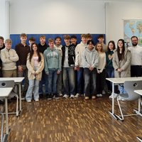 Oberbürgermeister Jan Rothenbacher im Gespräch mit Schülerinnen und Schüler der 10. Jahrgangsstufe