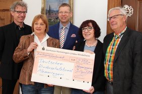 Im Amtszimmer von Memmingens Zweiter Bürgermeisterin Margareta Böckh, die auch gleichzeitig die Vorsitzende des örtlichen Kinderschutzbundes ist, fand heute die Übergabe des 2700-Euro-Schecks statt.