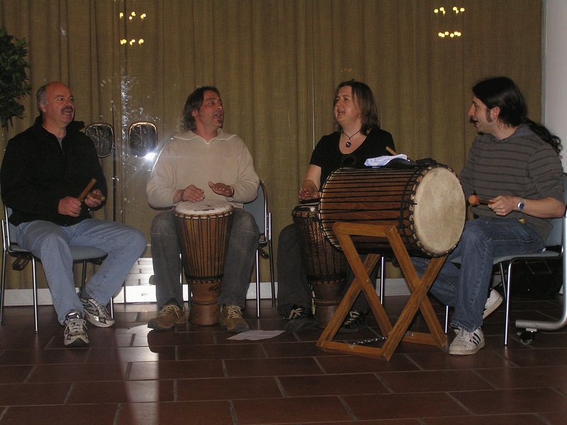 Umrahmt wurde die Vernissage von einem Teil der Sambasutra-Percussion-Gruppe vom BKH und der „Elfchen“-Gruppe, die mit ausdrucksstarken Worten die über-mächtigen depressiven Stimmungslagen preisgaben. Diese Worteinheiten sind stets elf Worte lang. Je nach Intonierung, Wiederholung, kräftiger Männer- oder zaghafter Frauenstimme geben sie Außenstehenden einen kurzen Moment Einblick in die Erkrankung „Depression“ – „Angst vorm Morgen traurige Gefühle übermächtig Ich bin zurück vom Traum“.