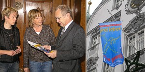 Zum fünften Mal wurden deshalb an öffentlichen Plätzen und Gebäuden in Städten und Gemeinden in Deutschland, Österreich, Schweiz und Südtirol Fahnen mit dem Motto: "frei leben - ohne gewalt" gehisst. So auch in Memmingen, wo Oberbürgermeister Dr. Ivo Holzinger die Fahne am Rathaus aufziehen ließ, um seitens der Stadt ein deutliches Zeichen gegen Gewalt zu setzen.