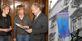 Das Bild zeigt links: Claudia Fuchs, Frauenbeauftragte der Stadt Memmingen, Silvia Nuber, Mitarbeiterin des Frauenhauses Memmingen und Dr. Ivo Holzinger, Oberbürgermeister der Stadt Memmingen.