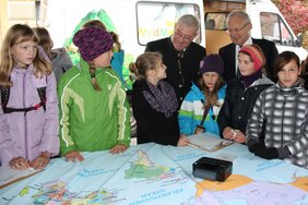 Was hat Kaugummi mit dem Wald zu tun? Warum brauchen wir Wald für unser tägliches Leben in der Stadt? Diesen und weiteren spannenden Fragen ging die "SOKO Wald" nun in Memmingen nach. Das Waldmobil der Schutzgemeinschaft Deutscher Wald (SDW) machte auf seiner Deutschlandtour drei Tage Halt vor dem Memminger Rathaus. Fünft- und Sechstklässler gingen als "kleine Ermittler" auf die Suche nach den Spuren des Waldes in unserem Lebensalltag. Zum Abschluss des Projekts dankte Oberbürgermeister Dr. Ivo Holzinger den Waldpädagogen der SDW für ihr Engagement und die gute Zusammenarbeit.
