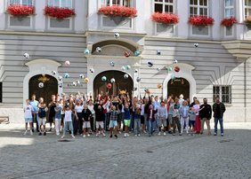 Bei der Ehrung der Schulbesten Sportlerinnen und Sportler empfing Oberbürgermeister Jan Rothenbacher wieder mehr als 50 Jugendliche im Rathaus. In Anwesenheit von Sportsamtsleiter Jürgen Schäle und Geschäftsführer des Arbeitskreises „Sport in Schule und Verein“ Bastian Mönius gratulierte er den Mädchen und Jungen zu ihren sportlichen Leistungen und überreichte ihnen als Anerkennung neue Sportbälle.