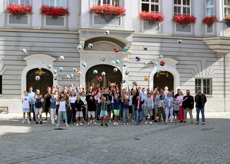 Mehr als 50 Schülerinnen und Schüler der Memminger Grund-, Mittel- und Förderschulen, Realschulen, Gymnasien und der Notker-Schule erhielten als Anerkennung neue Basket-, Volley- und Fußbälle.