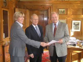 Oberbürgermeister Dr. Ivo Holzinger begrüßte den Ehrengast Herbert Müller, gemeinsam mit Schulamtsdirektorin Johanna Heiß-Wimmer, ihrer Stellvertreterin Elisabeth Fuß und dem Staatlichen Schulrat Werner Habereder im Rathaus. Der Oberbürgermeister dankte der Schulamtsdirektorin dafür, diesen offiziellen Akt im Memminger Rathaus vollziehen zu dürfen und nicht wie üblich im Staatlichen Schulamt in Mindelheim. „Diese Verabschiedung hat nichts mit dem Landtag zu tun, sondern mit dem erlernten Beruf von Herbert Müller“, erläuterte der Rathauschef eingangs, gegenüber den Vertretern der Presse und des Fernsehens. „Herzlichen Dank für die geleistete Arbeit in und für die Stadt Memmingen“, dankte der Oberbürgermeister dem Fachlehrer a. D. (außer Dienst).