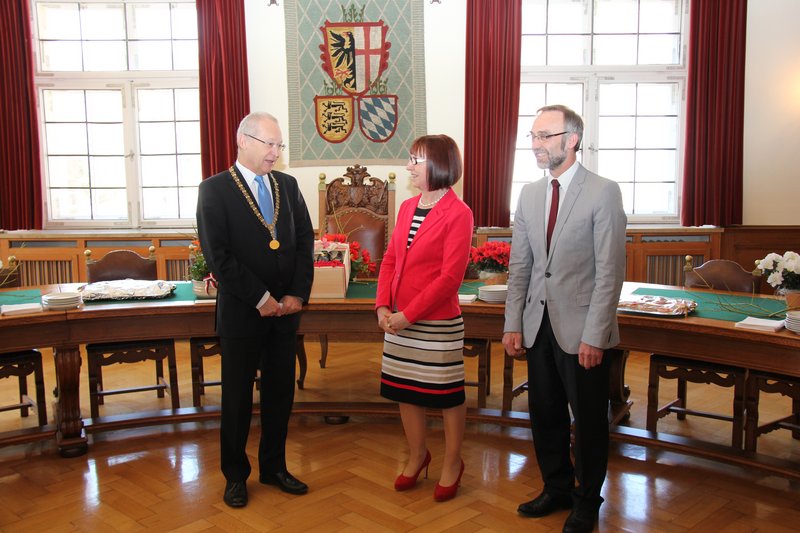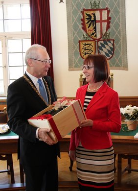 Seine herzlichsten Glückwünsche überbrachte Oberbürgermeister Dr. Ivo Holzinger bei einem Empfang im Rathaus für Bürgermeisterin Margareta Böckh an ihrem 60. Geburtstag. Unter Beisein von Vertretern der Stadtratsfraktionen und Mitarbeiterinnen und Mitarbeitern der Stadtverwaltung sowie Familienangehörigen ließ der Oberbürgermeister den politischen Werdegang Revue passieren. Es sei ihm ein persönliches Anliegen ihr nicht nur als Bürgermeisterin zu gratulieren, schloss Dr. Holzinger.