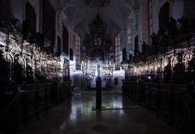 Hafenbrädl im Rahmen ihrer Ausstellung. „Im Gegensatz zu Martin Luthers Aufruf vor 500 Jahren ‚Die Ordnung fordert Zucht und eher, dass Weiber schweigen, wenn die Männer reden‘ bringt Vanessa Hafenbrädl weibliche Stimmen in die Kartause“, ergänzte Regina Gropper, Leiterin des Stadtmuseums. Die verwendeten Texte stammten aus Éric Vuillards „Der Krieg der Armen“ (nach Thomas Müntzer), es sprach Anna McCarthy nach dem Arrangement von Zoro Babel.
