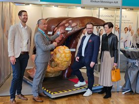 An einem überdimensionalen Leber-Galle-Pankreas-Modell informierte Chefarzt Prof. Dr. Eike Gallmeier von der Medizinischen Klinik II am Klinikum Memmingen mit seinem erfahrenen Team über die wichtigsten Erkrankungen dieser Organe wie Gallensteine, Bauchspeicheldrüsenentzündungen, Zysten und Tumore sowie ihre Therapiemöglichkeiten. Zudem sprach Prof. Gallmeier in seinem gut besuchten Vortrag über Fortschritte bei der Vorsorge, Früherkennung, Diagnostik und Behandlung von Krebserkrankungen des Verdauungssystems.