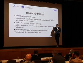 Das Publikum hatte viele Fragen an die Experten aus der Wissenschaft. Eine Mitarbeiterin aus der Kinderheilkunde wollte wissen, ob auch Transporte von Frühgeborenen angedacht seien. Prof. Biberthaler verneinte dies, ein Inkubator sei zu schwer für einen Transport im eVTOL. Ein Hobby-Modellflieger erkundigte sich nach der Flughöhe des eVTOL. Diese bewege sich bei den relativ kurzen Flügen Interhospitalflügen zwischen 1000 und 2000 Fuß, informierte Prof. Holzapfel. Eine Rettungssanitäterin fragte nach der Zukunft des Rettungsdienstpersonals. Es werden zukünftig aufgrund der demographischen Entwicklung deutlich mehr medizinische Transporte notwendig, erläuterte Prof. Biberthaler. Das System eResCopter werde das bestehende System nicht ersetzen, sondern komme ergänzend hinzu.