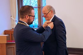 Nie aufdringlich, aber immer interessiert und engagiert stehe Ehrenbürger Herbert Müller bis heute allen Aktiven in der Stadtpolitik mit Rat und Tat zur Seite, würdigte Oberbürgermeister Jan Rothenbacher in einer Feierstunde zum 80. Geburtstag des früheren Stadtrats und Landtagsabgeordneten Herbert Müller. Für sein langjähriges Engagement als Vorsitzender des Kuratoriums „Zwölf Bauernartikel 1525“ und Mitglied der Jury des Memminger Freiheitspreises zeichnete der Oberbürgermeister den Jubilar mit der Freiheitsmedaille aus.