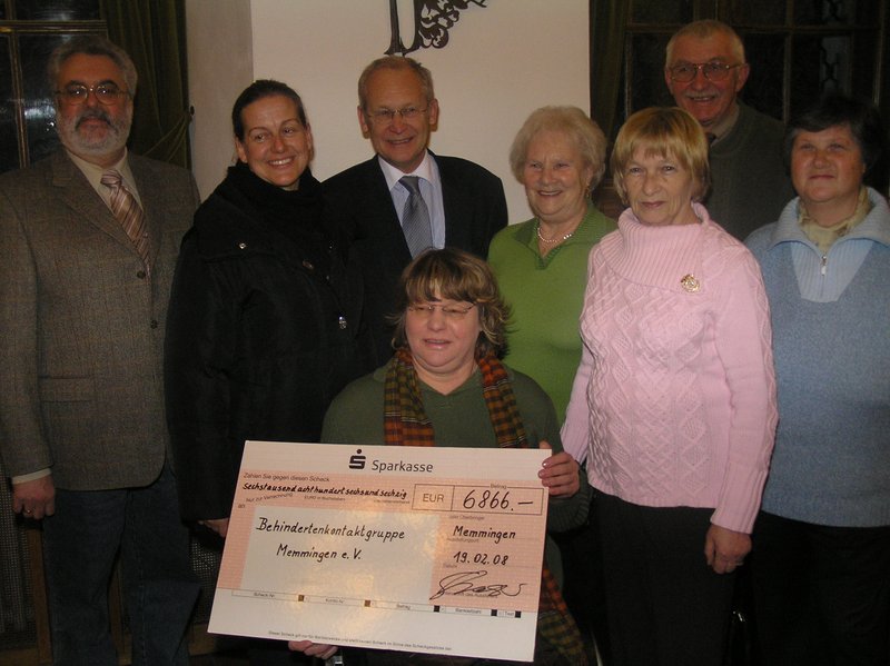 Einen Scheck mit dem Reinerlös aus der dreimaligen Tanzaufführung des Märchens „Frau Holle“ der Dancing-School Tosca wurde im Beisein von Oberbürgermeister Dr. Ivo Holzinger an die Vertreter der Memminger Behindertenkontaktgruppe übergeben.