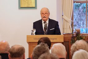 Die Ehrung fast ein halbes Jahrhundert nach seinem Ausscheiden aus dem Amt des Oberbürgermeisters beschrieb Dr. Johannes Bauer als „fast surreal“. Die Ehrung sei für ihn nun etwas ganz Besonderes, er sei gerührt, demütig und dankbar, betonte der heute 87-jährige Altoberbürgermeister. „Oberbürgermeister zu sein, ist ja kein Job, und wer die Ehre hatte, zwölf Jahre dieser Stadt in dieser Funktion zu dienen, behält die Bindung und Liebe zu ihr ein Leben lang“, erklärte Dr. Bauer. „Deshalb war ich immer glücklich, wenn ich in den letzten Jahrzehnten immer wieder nach Memmingen kam und einige steinerne Zeugen meiner Arbeit sehen konnte. Zum Beispiel diesen schönen Sitzungssaal, wo sich bei meiner Ankunft in Memmingen noch die Haftzellen der Stadtpolizei befanden.“ Die vier Kinder von Dr. Johannes und Barbara Bauer seien in Memmingen aufgewachsen und hätten bis heute eine Verbindung mit der Stadt.