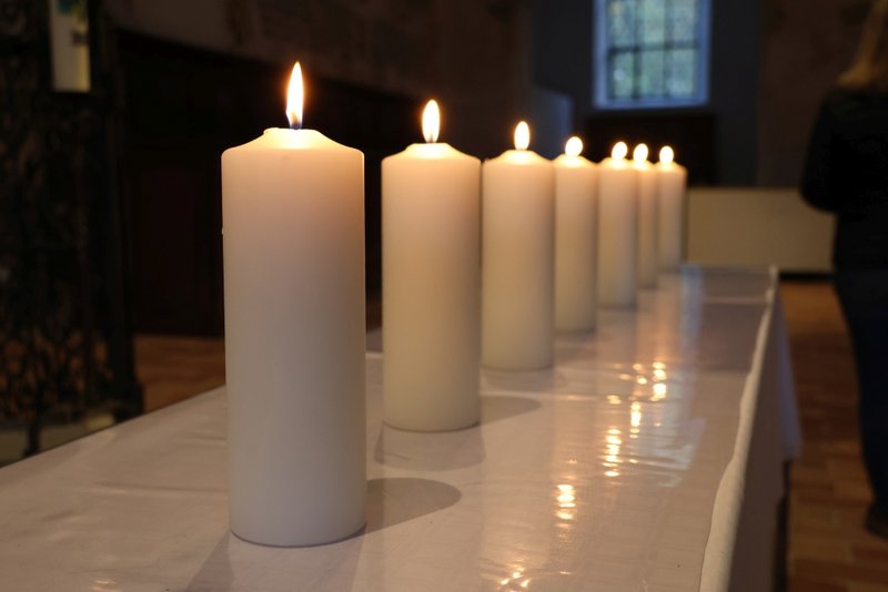 In einer symbolischen Aktion entzündeten Pfarrer Claudius Wolf und Kaplan Richard Hörmann Kerzen für alle großen Konfliktherde der Welt. Dabei wurde der Menschen in Israel, in der Ukraine, in Niger, in Myanmar, im Sudan und in Somalia gedacht. Jedem Krieg wurden Friedensworte aus der Heiligen Schrift entgegengesetzt: „Worte der Hoffnung, damit der Schrecken nicht das letzte Wort hat!“