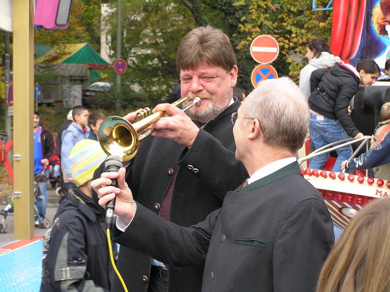 Marktreferenten Rolf Spitz, gab traditionellen mit seinem „Trompetenruf“ das offizielle Startsignal und der Memminger Jahrmarkt konnte beginnen. Im Anschluss durften Oberbürgermeister und Marktreferent eine wilde Fahrt in der Attraktion „Magic“ genießen. Die Eröffnung wurde durch die Musikkapelle Amendingen musikalisch untermalt.