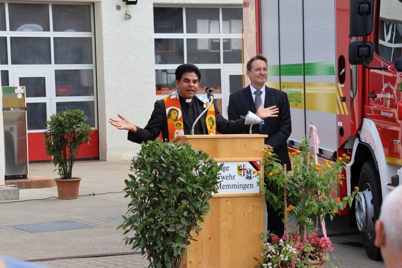 Beide Fahrzeuge wurde von Stadtpfarrer Pater Joshy Palakunnel O. Praem. und Pfarrer Ralf Matthes feierlich gesegnet. Auch die beiden Geistlichen wiesen darauf hin, dass sie mit dieser Segnung die Menschen miteinbeziehen, die damit in einen Einsatz fahren sowie diejenigen, denen bei den zukünftigen Einsätzen geholfen werde.