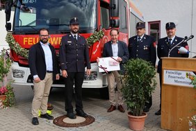 Das HLF bekam den Namen Hans-Martin, für den Dritten Bürgermeister Dr. Hans-Martin Steiger. „Damit wollen wir Danke sagen für das Engagement und seine beständig offenen Ohren für die Belange der Memminger Feuerwehr, nicht nur als jahrelanger Stadtrat, sondern auch als Bürgermeister“, erklärte Stadtbrandrat Raphael Niggl dem völlig überraschten Geehrten.
