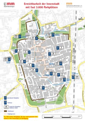 Von den sieben Parkhäusern und Tiefgaragen mit etwa 2.000 öffentlichen Stellplätzen ist die gesamte Altstadt in wenigen Minuten fußläufig zu erreichen. Zudem ermöglichen rund 1.000 oberirdische öffentliche Parkplätze in unmittelbarer Nähe zu den Geschäften, Cafés und Restaurants eine bequeme Anfahrt.
