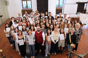 Mindestens 24 Stunden haben sich Schülerinnen und Schüler im Rahmen des Projekts „Zukunft“ der Freiwilligenagentur Schaffenslust ehrenamtlich engagiert. Wer beispielsweise einmal in der Woche beim Training eines Sportvereins, bei der Hausaufgabenbetreuung oder in der Seniorenarbeit mitgeholfen hat, war rund drei Monate lang ehrenamtlich dabei. Im Rathaus erhielten die Jugendlichen nun Zertifikate aus den Händen von Oberbürgermeister Jan Rothenbacher. „Wenn sich so viele junge Menschen engagieren, wird viel bewegt. Ihr habt meinen vollen Respekt! Vielen Dank, dass ihr euch auf das Projekt eingelassen und euer ehrenamtliches Engagement so stark ausgeübt habt.“ Er selbst habe früher ehrenamtlich in der Pflege mitgearbeitet, erzählte der Oberbürgermeister. „Davon zehrt man lange, ich habe tolle Erfahrungen gemacht.“