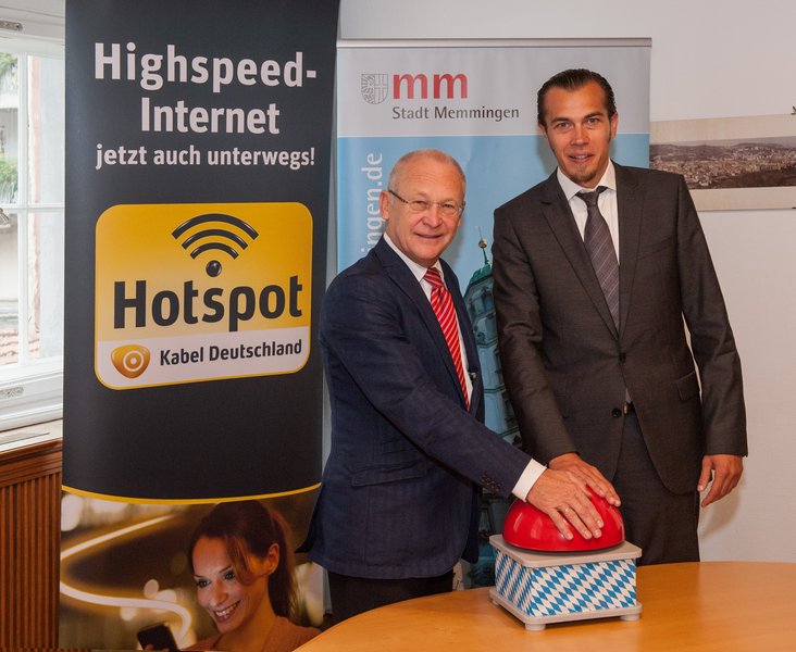 Die öffentlichen WLAN-Hotspots von Kabel Deutschland in Memmingen sind ab sofort online und machen somit kostenloses mobiles Surfen möglich. Jetzt können die Memminger und Besucher an belebten Straßen und Plätzen 30 Minuten kostenfrei im Internet surfen. Kunden von Kabel Deutschland können die vier WLAN-Hotspots 24 Stunden pro Tag nutzen. Die Memminger WLAN-Hotspots von Kabel Deutschland befinden sich in der Baumstraße / Schrannenplatz, in der Maximilianstraße 4, in der Nonnengasse / Frauenkirchplatz und in der Ulmer Straße / Marktplatz. In den vergangenen Wochen wurden dazu Verteilerkästen des Kabelnetzbetreibers in Memmingen mit sogenannten WLAN-Hauben versehen. Mit einem symbolischen Knopfdruck haben heute der Oberbürgermeister von Memmingen, Dr. Ivo Holzinger, und Jens Leufen, zuständig für den Bereich WLAN bei Kabel Deutschland, das neue WLAN-Angebot in Memmingen offiziell gestartet. Es ist Teil einer großen WLAN-Initiative von Kabel Deutschland in Bayern. In rund 70 Städten und Gemeinden wurden bis Ende September 2013 über 300 WLAN-Hotspots aktiviert.