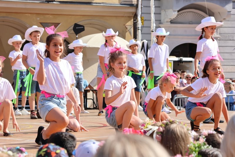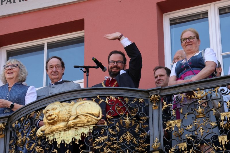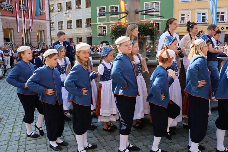 Zum Abschluss gaben alle gemeinsam das Kinderfestlied „Reigen auf dem grünen Rasen“ zum Besten. Oberbürgermeister Jan Rothenbacher freute sich sehr über die gelungenen Auftritte: „Vielen Dank euch allen, es hat mir riesen Spaß gemacht euch zuzusehen.“ Er wünschte den Schülerinnen und Schülern eine gute Brotzeit mit Schüblingen und Brezen. Und freute sich, alle beim anschließenden Umzug vom Hallhof bis ins Stadion wiederzusehen.