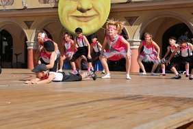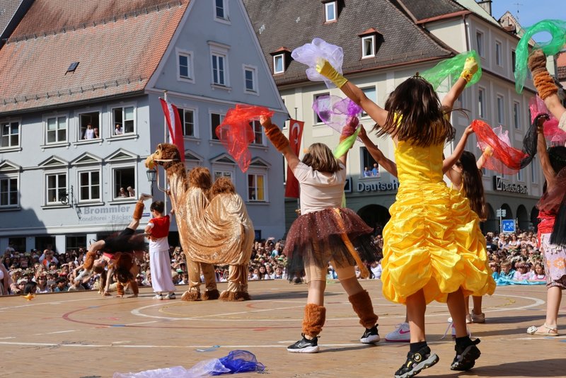 Den Zunfttanz der Weber mit den traditionellen Kostümen brachte in diesem Jahr die Grundschule Amendingen auf die Bühne. Später machten die Tänzerinnen der Theodor-Heuss-Schule klar: „Nur gemeinsam sind wir stark“! Und zu den Hits des Barbie-Films hatte die Edith-Stein-Schule eine mitreißende Darbietung einstudiert. Sehr akrobatisch wurde es bei der Vorführung der Steinheimer Grundschule, die unter dem Titel „Showtime“ allerhand bekannte Melodien zu einem schwungvollen Medley zusammengestellt hatten. Und eine Auswahl bekannter Disney-Lieder hatte die Elsbethenschule für ihren Tanz gewählt. Sogar ein Kamel brachten die Schülerinnen und Schüler dafür auf die Bühne.