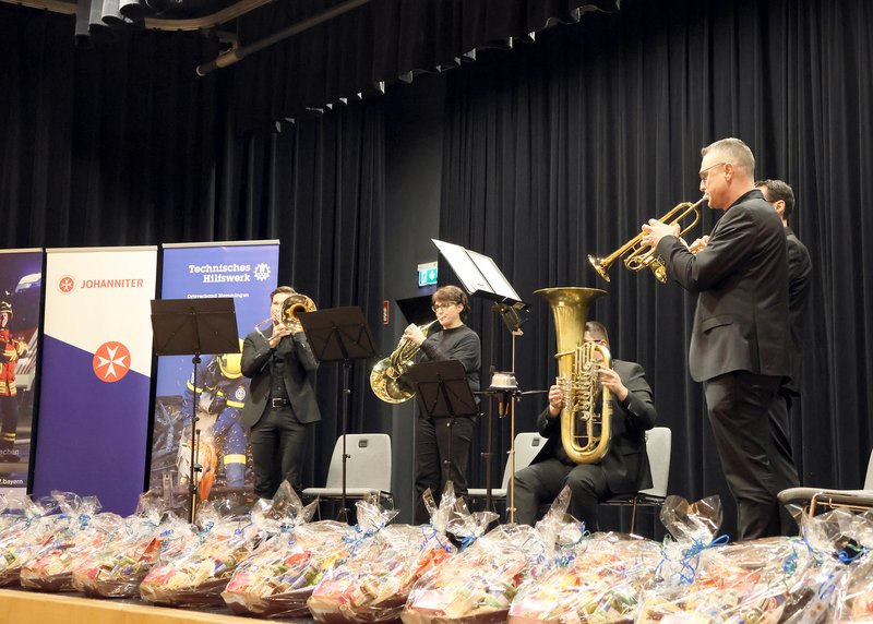 Zu den Ehrengästen des Blaulichtempfangs zählten rund 150 Vertreterinnen und Vertreter der Feuerwehren, der Polizei, des THW und der freiwilligen Hilfsorganisationen sowie Bürgermeister, Ehrenbürger und Mitglieder des Stadtrats. Musikalisch umrahmt wurde der Empfang von Bläserinnen und Bläsern der Stadtkapelle Memmingen.
