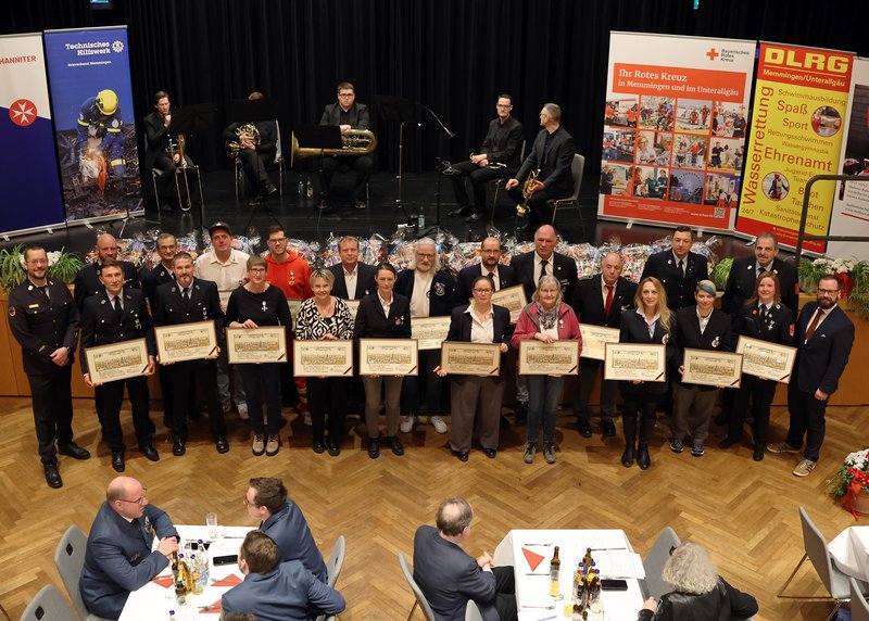 Täglich sind sie für uns im Einsatz: Die Rettungs- und Einsatzkräfte der Blaulichtorganisationen. Ehrenamtlich engagieren sich zahlreiche Frauen und Männer für unsere Sicherheit. Das lobte auch Oberbürgermeister Jan Rothenbacher beim Blaulichtempfang im Maximilian-Kolbe-Saal: „Sowohl die Hochwasserlage als auch die Hausexplosion im Kalker Feld waren im letzten Jahr enorme Herausforderungen in und um Memmingen. Dank Ihnen konnten wir diese Einsatzlagen gut bewältigen, und wissen, dass wir uns jederzeit auf Sie verlassen können. Besonders hervorheben und feiern möchten wir an diesem Abend das langjährige, ehrenamtliche Engagement, ohne das es nicht gehen würde.“