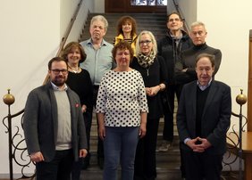 Als Anerkennung für die langjährigen Dienste überreichte er Sekt, Blumen und eine historische Stadtansicht an die ehemaligen Mitarbeiterinnen und Mitarbeiter.