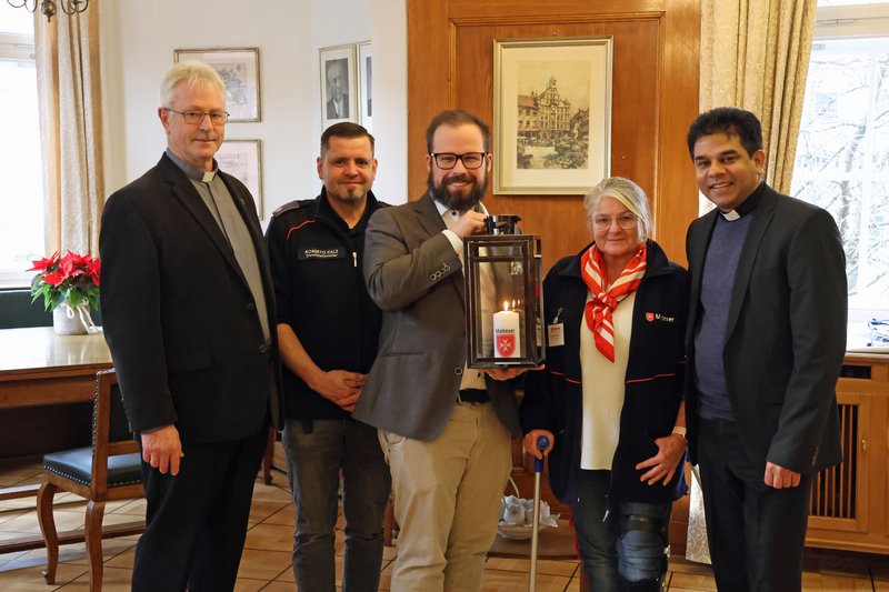 Von Österreich kam das Licht nach München und wurde am 15. Dezember mit der Bahn in ganz Deutschland verteilt. In Memmingen wurde es am Sonntag in der Abendmesse von St. Josef an die Pfarreiengemeinschaft Memmingen übergeben. „Heute darf ich Ihnen, Herr Oberbürgermeister, das Licht der Hoffnung auf Frieden auf der ganzen Welt stellvertretend für die Bürgerinnen und Bürger der Stadt Memmingen übergeben“, betonte Roberto Kalz. Stadtpfarrer Pater Joshy Palakunnel, Diakon i.R. Roland Pressl und Monika Baum, ehrenamtliche Mitarbeiterin der Malteser, begleiteten die Übergabe des Lichts von Bethlehem im Rathaus. Heuer steht die Friedenslicht-Aktion unter dem Motto „Vielfalt leben, Zukunft gestalten“.