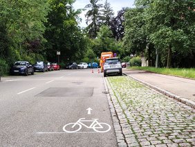 Im Kaiser- und Königsgraben wurde der Straßenbelag mit neuen Fahrbahnmarkierungen in Form einer so genannten „Piktogrammkette“ versehen. Dies soll Autofahrende auf den Radverkehr aufmerksam machen und dadurch die Sicherheit für Radfahrerinnen und Radfahrer erhöhen. Mit den Piktogrammen wurde ein Beschluss des Verkehrsausschusses umgesetzt.