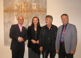 Dr. Bayer würdigte in seiner Begrüßung das Werk der beiden Künstler. „Angelica von Stülpnagels Bilder sind eine Spur in andere Kulturen, Welten und Epochen“, so Dr. Bayer und stimmte den Worten einer Rezensentin zu, die die Bilder als „ein kleines Konzert aus Transparenz, Zartheit und Sinnhaftigkeit“ bezeichnete.