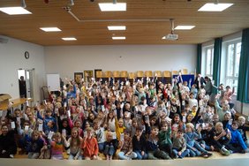 Schülerinnen und Schüler der Grundschule Memmingen-Steinheim präsentieren ihre neuen wiederverwendbaren Trinkflaschen (Foto: Katharina Winkler/GS Steinheim)