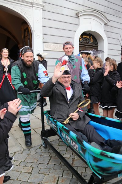 Die „Himmlischen Teufel“ des TV Memmingen stürmten mit dem Schlachtruf „Mau Mau Mau, s’wird scho gau!“ das Memminger Rathaus. Unterstützt wurden sie dabei von den Stadtbachhexen und anderen Narrenzünften aus der Region. Nach Kräften verteidigte Oberbürgermeister Manfred Schilder das Rathaus, musste sich aber doch geschlagen geben. Mit dem symbolischen Rathausschlüssel übergab der Rathauschef Prinzessin Paula I. mit ihrem Prinzen Stefan II. bis Aschermittwoch das Sagen in der Stadt.