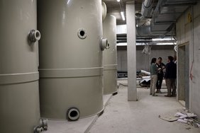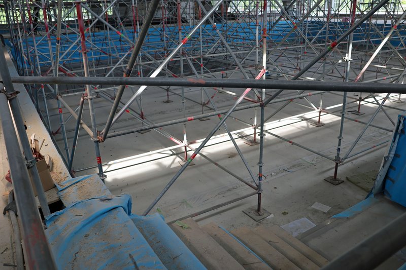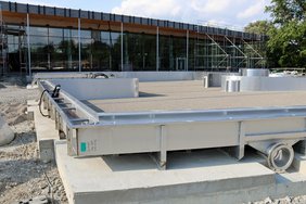 Nach Demontage des Gerüsts im Innenraum des Hallenbads können die Badehalle abgedichtet, der Fliesenbelag fertiggestellt und die Beckenböden verschweißt werden. Ab September beginnen die Arbeiten in den Außenanlagen und im Winter wird die ersten Teile der umfangreichen Technik bereits in Betrieb genommen.