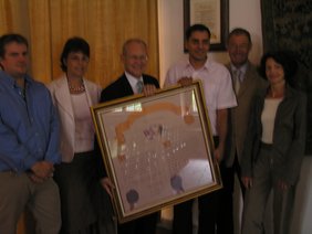 Der ehemalige Vorsitzende des Freundekreises Memmingen-Auch, Wolfgang Zorn, überbrachte dem Oberbürgermeister Dr. Holzinger von seinem jüngsten Aufenthalt in Auch ein Duplikat der Partnerschaftsurkunde Memmingen-Auch. Dort überreichte sie ihm Bürgermeister Claude Bétaille. Selbige Urknde ist im Rathuas von Auch vorzufinden. Roland Gromer, der neue Vorsitzende des Freundeskreises Memmingen-Auch, gab anlässlich der kleinen Feierstunde im Rathaus einen Ausblick auf verschiedene, geplante Vorhaben. Es sollen u. a. die traditionellen Studienfahrten des Freundeskreise fortgesetzt werden. Idee ist, diese an dem Jakobusweg aufzuhängen, da lt. Gromer so der europäische Gedanke intensiv mit Leben gefüllt wird.
