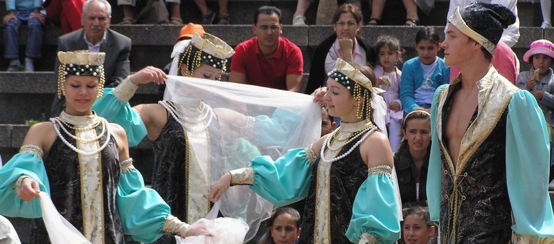 Doch nicht nur der Magen der Gäste hatte Anlass zur Freude. Auch das Auge kam nicht zu kurz. In farbenprächtigen Kostümen zeigten Folkloregruppen ihr Können. Die Tanzgruppe „Sappho“ brachte Tänze aus Griechenland nach Memmingen, einen Russischen Brauttanz zeigte der russisch-ukrainische Freundeskreis und die Gruppe „Folk-Acli“ aus Kaufbeuren ließ ihr italienisches Temperament auf die Zuschauer überspringen. Zahlreiche weitere Gruppen wie beispielsweise die syrisch-orthodoxe Kindertanzgruppe, Kinder und Jugendliche der Dancing-School Tosca, der Memminger Trachtenverein oder türkische Folkloregruppen verzauberten den Westertorplatz in eine andere Welt.