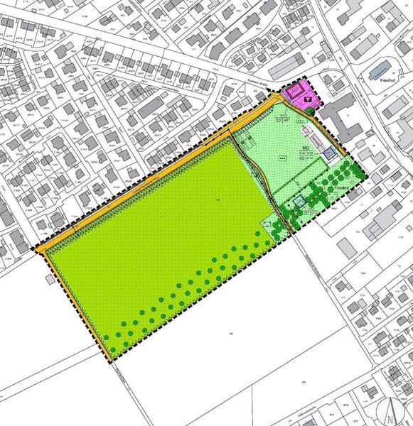 Im Zuge der Vorbereitenden Untersuchung Steinheim (VU) zwischen Sommer 2018 und Sommer 2020 wurde in enger Zusammenarbeit mit der Bevölkerung die Fläche westlich des Zehntstadels als zukünftige öffentliche Grünfläche festgelegt. Auch westlich daran anschließend soll der Bereich nach den Zielen der VU von Bebauung frei bleiben. Dies wurde im Bebauungsplan nun planungsrechtlich festgesetzt und somit gesichert. Die Fläche kann darüber hinaus auch als Kaltluftschneise für den Ortskern dienen und wirkt sich insgesamt positiv auf das Erscheinungsbild das Ortsbild westlich des Zehntstadels aus.