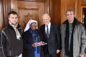 Die Memminger Kinderhilfsorganisation Aktion LebensTräume ist in vielen Regionen weltweit im Einsatz. „Wir bilden die Nachhut, wenn die anderen Organisationen bereits wieder weg sind“, berichtet Vereinsvorsitzender Klaus Wassermann. Denn für die Organisation stünde die langfristige und nachhaltige Entwicklung im Vordergrund. Wassermann ist mit der Ordensfrau Schwester Veronika und dem Projekthelfer Timo Hawlik in das Rathaus gekommen, um Oberbürgermeister Dr. Ivo Holzinger von ebensolchen Projekten in Tansania zu berichten.