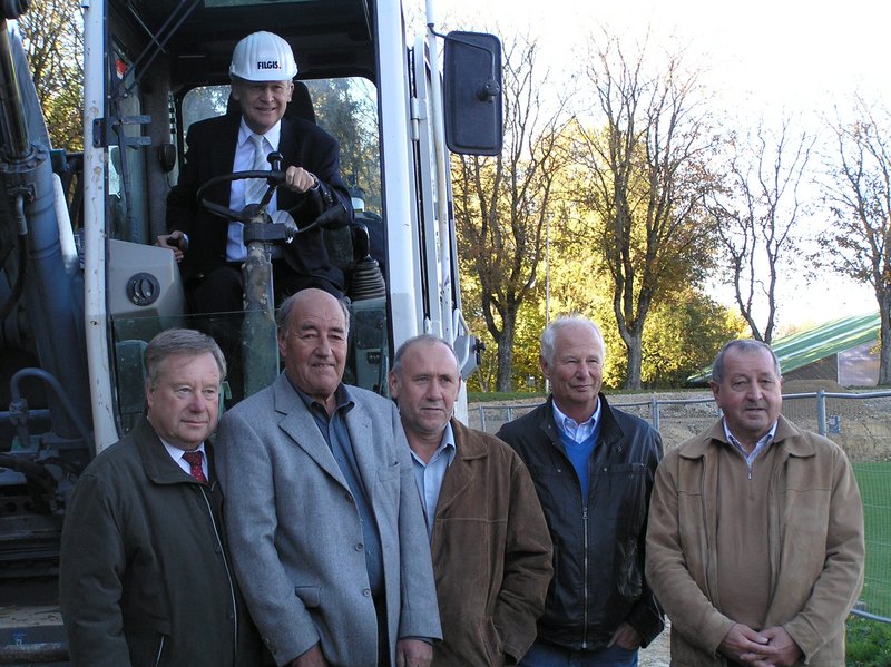 Den Spatenstich für den 2. Bauabschnitt des Stadionumbaus tätigte Oberbürgermeister Dr. Holzinger heute auf schwungvolle Art. Das Stadtoberhaupt nahm persönlich im Führerhaus des Baggers Platz und eröffnete mit einem ersten „Baggerstich" den 2. Bauabschnitt des Stadionumbaus. Der 2. Bauabschnitt umfasst die Bauarbeiten zum Neubau der Tribüne, der Umkleiden und Sanitäranlagen sowie für die Nebenräume. Die Tribüne hat eine Länge von 80 Metern und fasst 1001 Personen. Ferner verfügt das neue Stadion über 4. 500 Stehplätze. Die Gesamtkosten belaufen sich auf ca. 4 Millionen Euro.