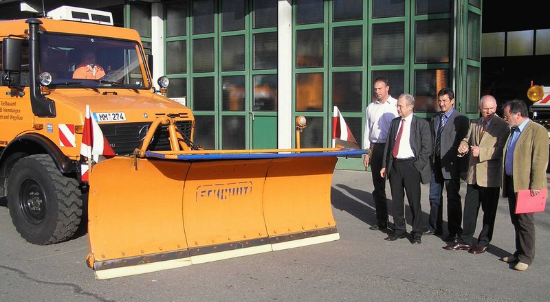 „Für die kommende Wintersaison ist man bestens gerüstet“, berichtete Dr. Holzinger. Die Stadt Memmingen ist für rund 280 km Straßen und Wege zuständig. Hierfür werden insgesamt 38 Räumfahrzeuge des Bauhofes und von beauftragten Unternehmen eingesetzt. Fast 1 300 Tonnen Streusalz sind bereits im Bauhof bevorratet und 40 Handräumer werden eingesetzt, die Straßenkreuzungen sowie Geh- und Radwegübergänge freizuhalten. Die zu räumenden Straßen sind in zwei Prioritäten eingeteilt. Zuerst werden wichtige Verkehrsverbindungen wie z. B. die Europastraße geräumt. Ein besonderes Augenmerk gilt auch den Autobahnanschlussstellen und den wichtigen Zufahrtsstraßen für die Feuerwehr, Polizei, Schulen, Kindergärten und dem Klinikum.