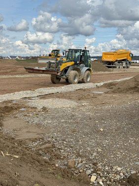 Die neue Grüngutsammelstelle im Industriegebiet Nord nimmt derzeit Gestalt an. Die Humusschicht wurde abgefahren, die Tiefbauarbeiten erfolgen und in den nächsten Wochen werden die Blocksteine aus Recyclingbeton für die Prallwand gesetzt sowie die Asphaltdecke eingebaut. Danach kann ein Teil des Oberbodens wiederverwendet werden um das Gelände anzufüllen. Anschließend folgt der Bau der Zäune und Tore, die das Grundstück begrenzen, danach kann auf den eigens abgemagerten Böden eine Blumenwiese angesät werden. Zur Eingrünung werden dann im Herbst noch 21 Bäume gepflanzt.