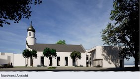 Das Grundstück das nördlich an die Kirche angrenzt wird in den nächsten Jahren ebenfalls umgestaltet. Hier hatte das Gremium die Idee, statt zweier Gebäude mit drei bzw. vier Stockwerken, einen Baukörper mit insgesamt bis zu max. sieben Etagen zu realisieren. So könne der Bestand an großen und alten Bäumen noch besser integriert werden, was den ausgedehnten Garten noch attraktiver für die Bewohner der 16 Wohneinheiten mache. Die angedachte innovative und nachhaltige Holzständerbauweise wäre auch bei einer solchen Größe noch umsetzbar und wertet das Gebäude zusätzlich auf.