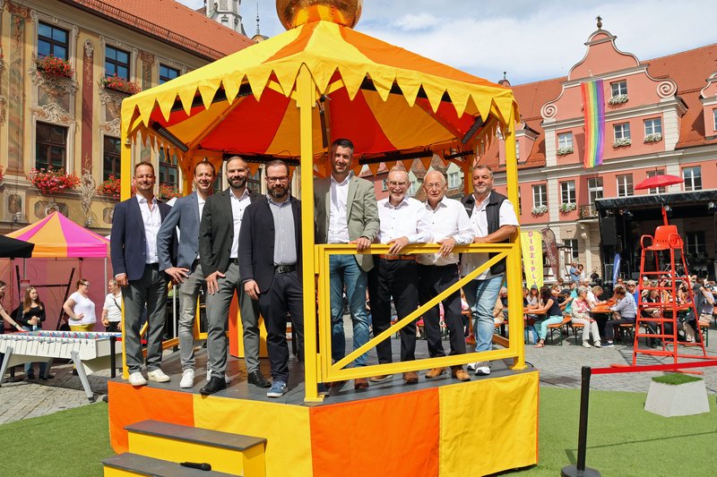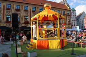Das Kulturamt entwickelte ein umfangreiches Rahmenprogramm mit Konzerten bis in den Abend. Zahlreiche Akteure aus Memmingen unterstützen das Spektakel als Helfer:innen an den Markt- und Spielständen oder mit schauspielerischen Beiträgen.
