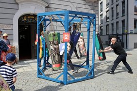 Auf Boxsäcken waren Teilnehmer des Bauernkriegs abgebildet. Hier galt es im Kampf zu bestehen.