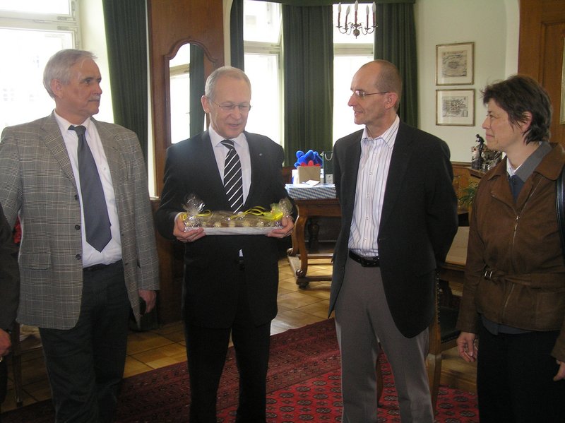 Oberbürgermeister Dr. Ivo Holzinger begrüßte ver.di Bundesvorstandsmitglied Achim Meerkamp, Dr. Brigitte Zach, Landesfachbereichsleiterin Gemeinden von ver.di Bayern, und Manfred Heeb vom ver.di-Berzirk Allgäu zu einem Gespräch im Rathaus.