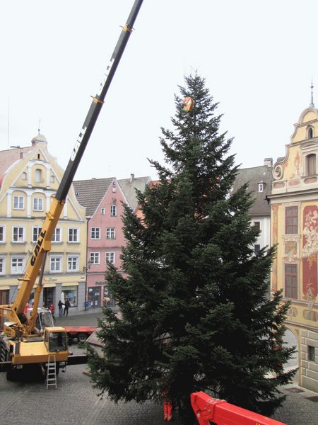 Eine gute Woche vor Beginn des diesjährigen Christkindlesmarktes steht nun bereits der Christbaum auf dem Marktplatz. Er wurde von Mitarbeitern der Stadtgärtnerei aufgestellt.