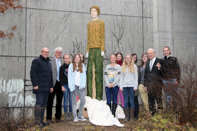 Die Schülerinnen Anna-Lena Wiblishauser und Lisa Winter erzählten begeistert vom Workshop und schilderten ihre Erfahrungen mit dem Künstler: "Robert Koenig hatte eine herzliche Art und war sehr bemüht, uns den Umgang mit dem Schnitzwerkzeug beizubringen und einen Zugang zum Thema Identität zu vermitteln." Das Kunstwerk habe im Aufgang zu den Kunst- und Werkräumen einen schönen Platz gefunden, sagten sie stolz.