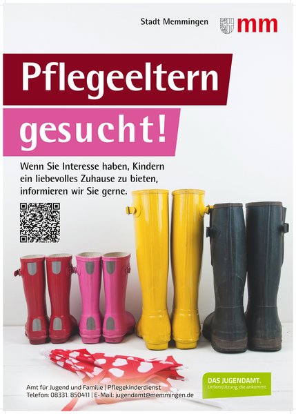 Das Jugendamt der Stadt Memmingen möchte mit einer Werbekampagne neue Pflegefamilien gewinnen. „Pflegeeltern nehmen Kinder auf, die aus verschiedenen Gründen nicht bei ihren leiblichen Eltern leben können. Sie geben diesen Kindern die Gelegenheit, in einem familiären Rahmen aufwachsen zu können und leisten damit eine gesellschaftlich höchst wertvolle Arbeit“, erläutert Jugendamtsleiter Michael Wagner.